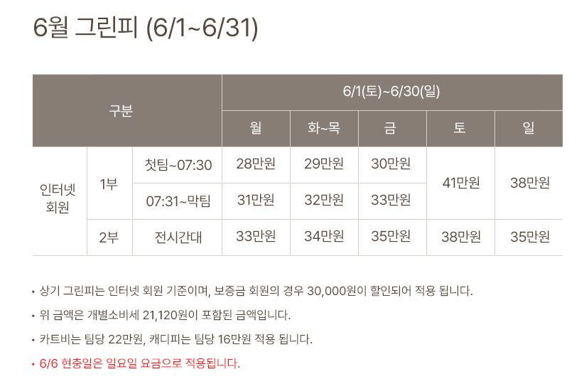 그린피 이벤트시 평일오전 1부기준 특가 24,0000원에도 나오는경우가 있으니 꼭 체크