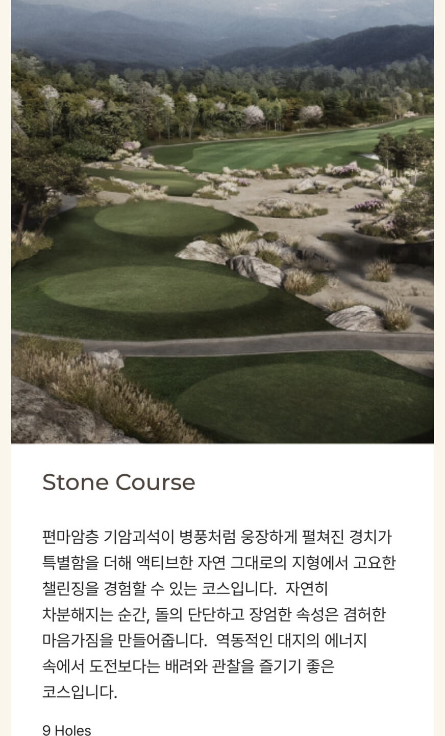 스톤코스는 암석으로 이뤄어진 코스로 기암괴석이 병풍처럼 웅장하게 펼쳐진경치가 우수하며, 포토존이 많습니다.