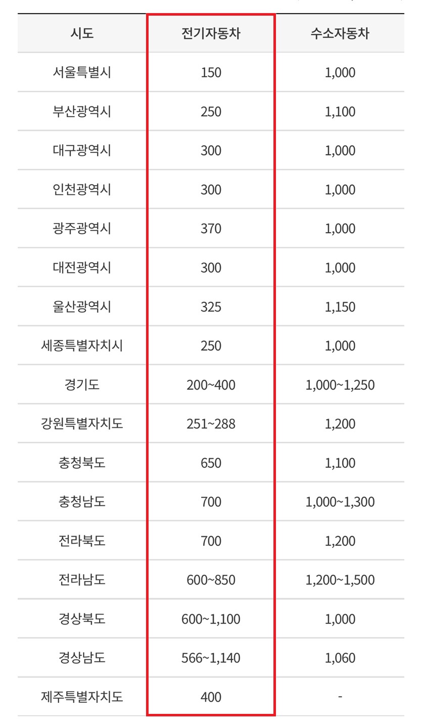 전국지역별 전기차보조금